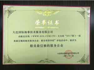 #不负众望# DIMSCO喜获"2017第十一届我最信赖的船员服务企业"