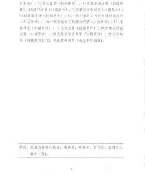 11. 《中级职称证书》影印件,需满足五年及以上要求。如没有中级职称证书的人员,以考取大副、大管轮、二级引航员适任证书时间算起五年及以上,需提供上述适任证书影印件,由单位人事、职改部门加盖公章。