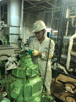最重要的一点就是不怕吃苦,少说多做。平日多跟着轮机员学习,