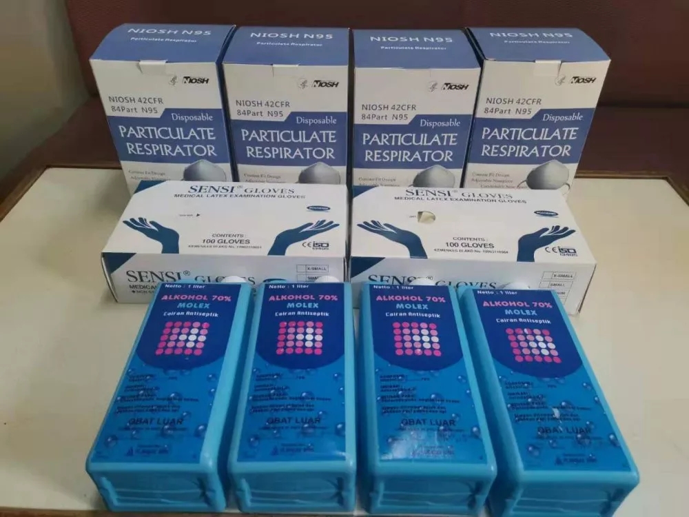 代理购买的N95口罩、酒精、手套