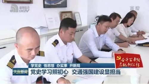 6月25日世界海员日当天,DIMSCO刘斐书记、管理培训部袁萍经理、毕崇峰船长、张明船长、迟振宝船长受邀前往辽宁海事局开展党建活动,通过党史讲座、参观红色海事展览等,让船员深刻领悟党史精神内涵。张明船长表示:我是一名船长,更是一名党员,将积极发挥先锋模范作用,带领全体船员,保障船舶安全运营,以优异的成绩向建党百年献礼。