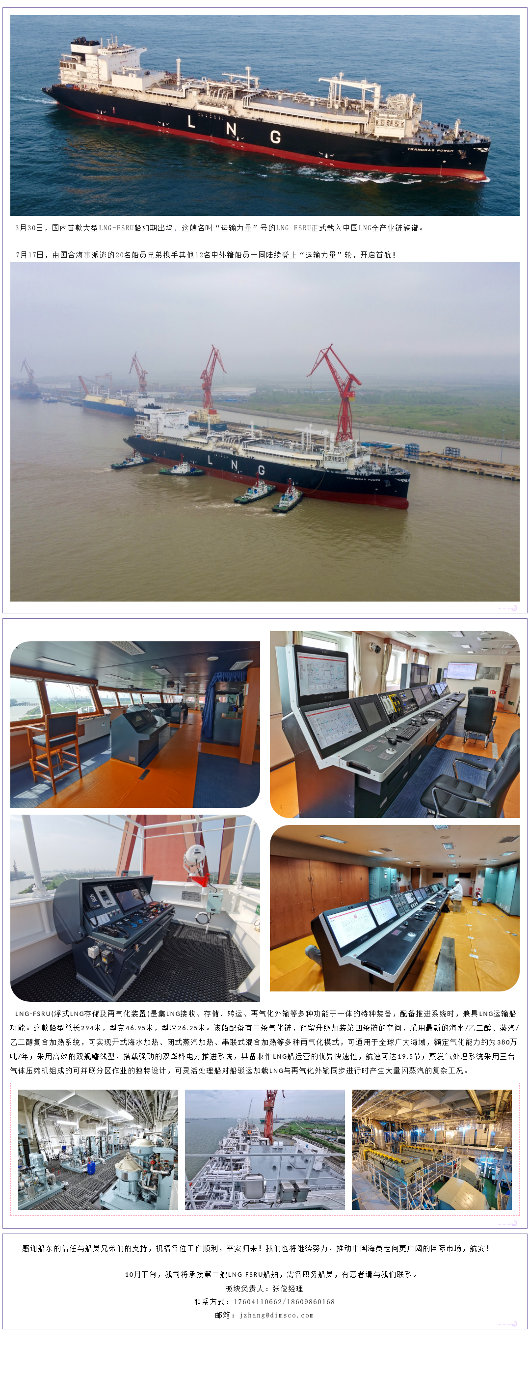 我司派员中国第一艘LNG-FSRU“运输力量”轮扬帆起航!