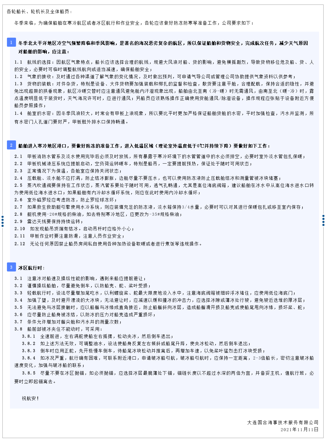 冬季船舶安全注意事项
